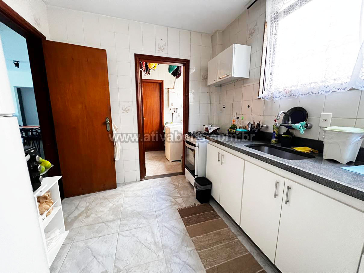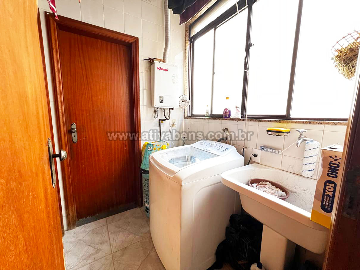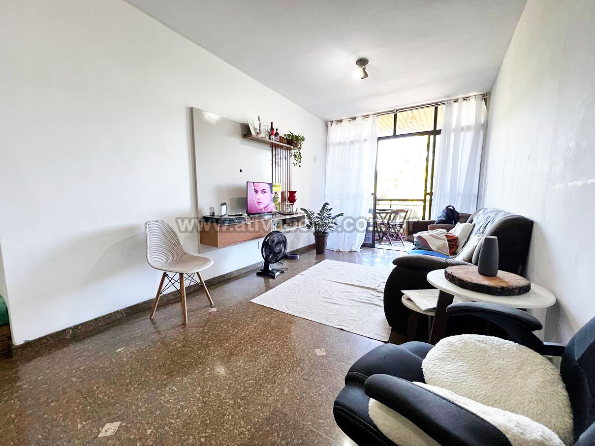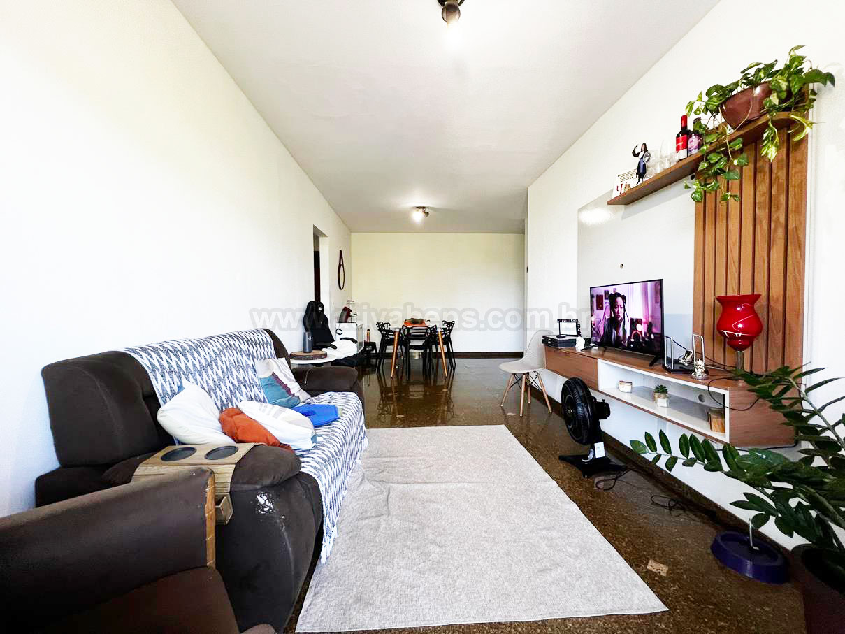 Este apartamento possui Sala grande em dois ambientes, 02 Quartos sendo um deles suíte e com acesso à varanda, Banheiro Social, Cozinha com armários e bem espaçosa, Área de Serviço separada, Dependência de empregada (atualmente usada como quarto) e Banheiro de Serviço.