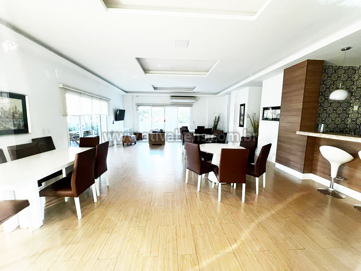 Possui Salão em 02 ambientes, Varanda Gourmet completa com pia, churrasqueira e cortina de vidro.